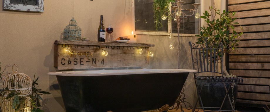 Outdoor bathrooms are beautiful spaces to indulge your senses for you to just feel connected to the outdoors like you do in the claw foot- bath at Crossfield Cottage B&B.
